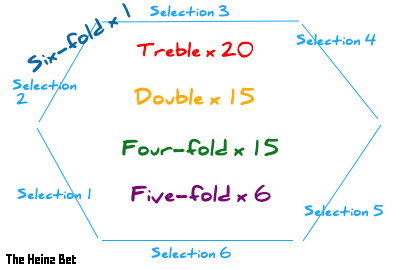 Named after the 57 varieties of Heinz products, this full-cover bet includes all the multiples from doubles up to a single 6-fold accumulator. What does that mean in practice? Well, it means you choose a whopping 6 selections and generate a total of 57 bets all told. But what does that mean in terms of winning and losing? Well, click here to instantly fill the calculator and have a look at a real-life Heinz bet. Yes, you read that right: it's a potential £776k profit. But before you get carried away, remember the chance of hitting that is astronomical. However, play around with the calculator and set all the outsiders to lose. You're still over £100 in profit! So if you can pick 3 guaranteed certs on a race card, a Heiz will allow you to pick three losers and still profit.