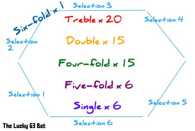 The Lucky 63 is the big daddy of 6 selection bets. It's truely full cover, containing 63 individual bets all the way up from 6 singles to a six-fold accumulator and everything in between. Or you can just think of it as a Heinz with the 6 singles added in. Either way, it's a big bet and can be quite daunting to get your head around. That's where the calculator comes in. Just click here to add an example Lucky 63 to the calculator. The first thing to catch your eye will be the eye-watering potential profit. But stay a little longer and play with the values in the status column. See what happens when you throw a few losers in there too. You'll notice that even if all 3 of your longshots lose - you're still in the money.